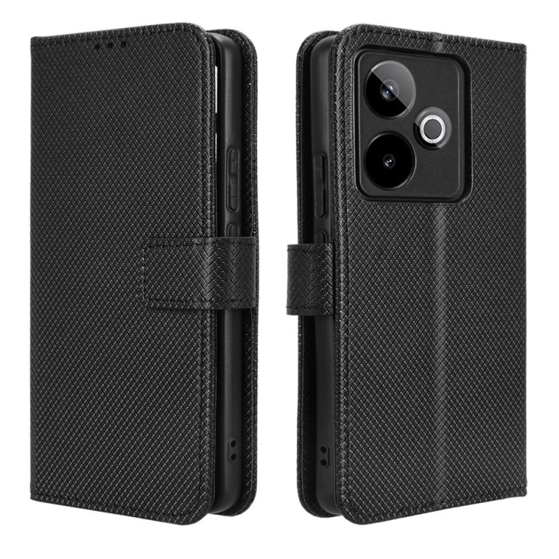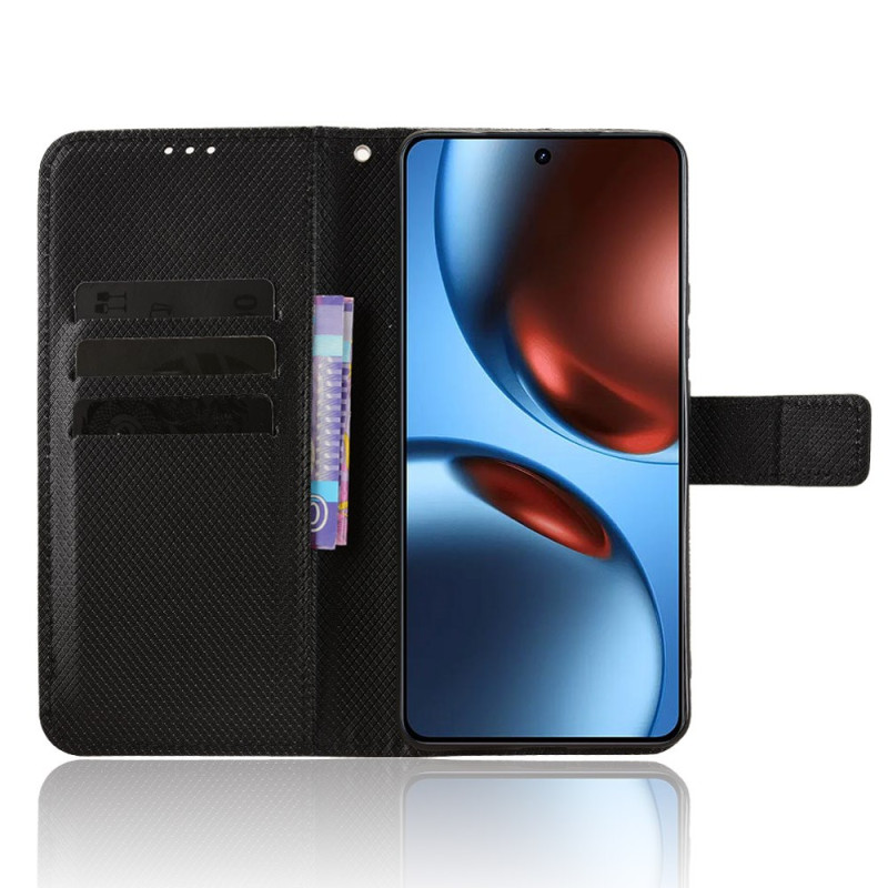 Tyylikäs lompakkokotelo, jossa on hienostunut timanttitekstiili Realme GT7 5G -puhelimelle. Mukana useita korttipaikkoja, muistiinpanotasku ja turvallinen magneettisuljenta. Käytännöllisen käsihihnan ansiosta sitä on helppo kantaa mukana.