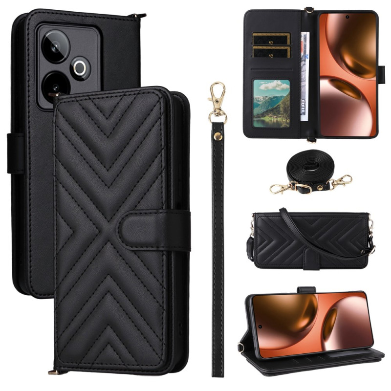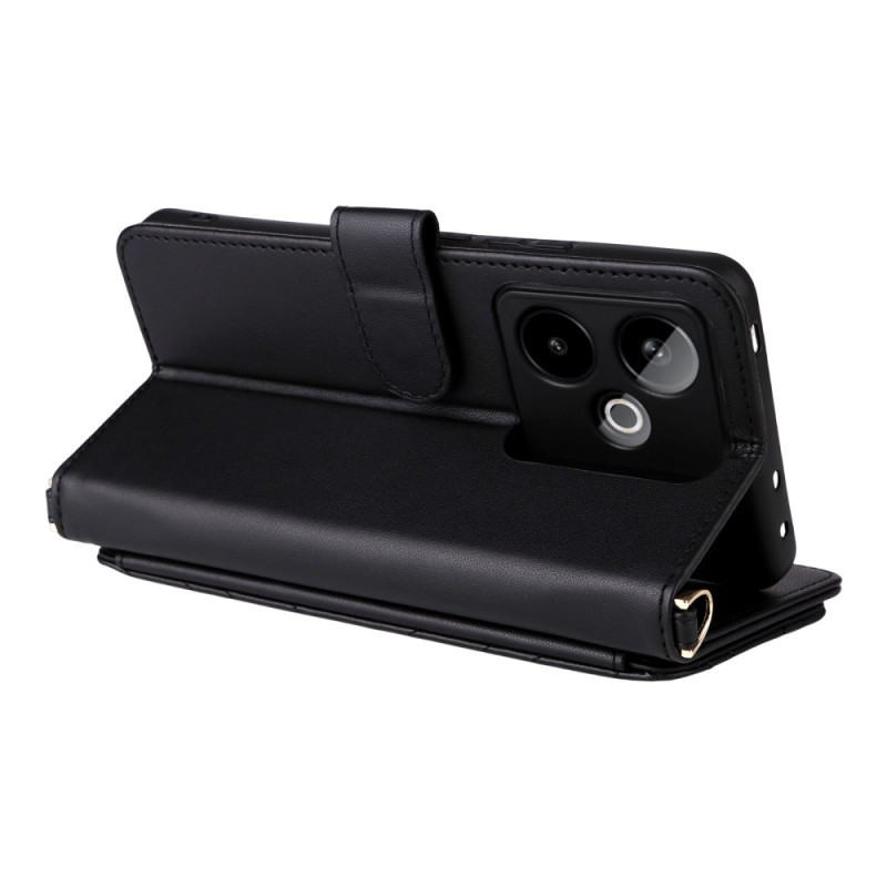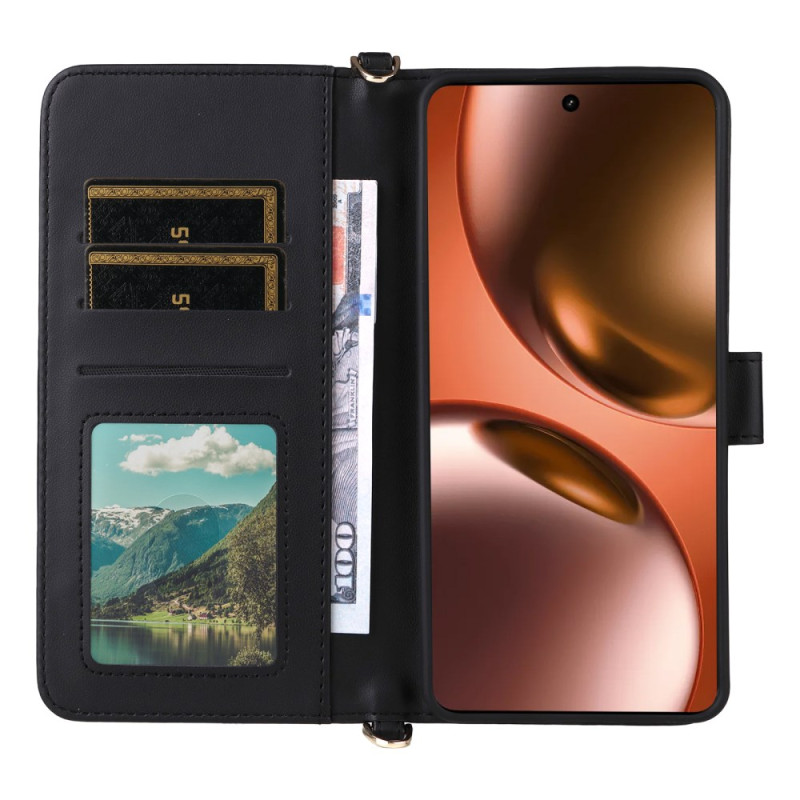 Tyylikäs lompakkokotelo Realme GT 7 5G:lle, jossa on säädettävä jalusta, 6 korttipaikkaa ja turvallinen magneettisuljenta. Mukana säädettävä olkahihna ja irrotettava käsihihna monipuolista jokapäiväistä kuljettamista varten.
