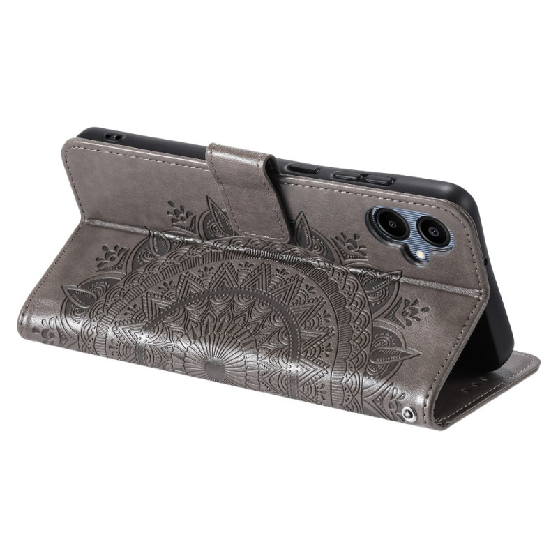 Tutustu tähän tyylikkääseen lompakkokoteloon Samsung Galaxy A07 5G / 4G:lle. Ensiluokkaisesta PU-nahasta ja pehmeästä TPU-kuoresta valmistettu suojakotelo tarjoaa täydellisen suojan ja sisältää säädettävän jalustan ja korttilokerot. Mukana hienostunut mandala-muotoilu ja käytännöllinen käsihihna.