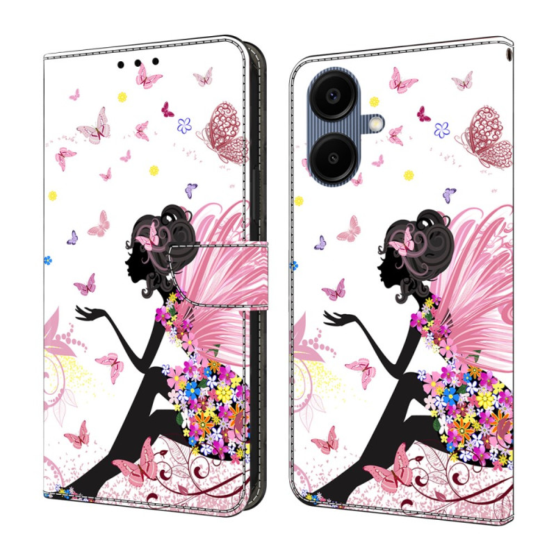 Tyylikäs lompakkokotelo, jossa on naispuolinen perhonen Samsung Galaxy A07 5G / 4G. Läppämuotoilu integroidulla taittuvalla jalustalla, 2 korttipaikkaa ja käteislokero. Turvallinen magneettisuljenta täydellistä suojaa varten.