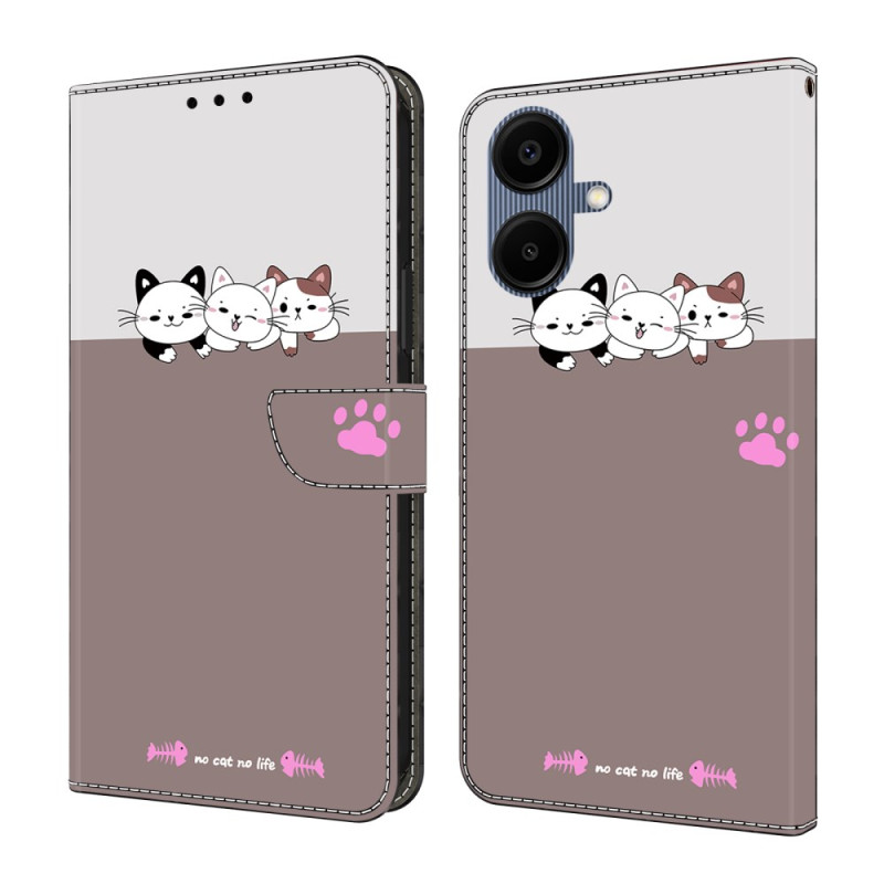 Suojaa Samsung Galaxy A07 5G / 4G -puhelimesi tyylikkäästi tällä tyylikkäällä lompakkokotelolla, jossa on läppä. Siinä on käytännöllinen ulostaitettava pidike, 2 korttipaikkaa ja turvallinen magneettisuljenta, ja siinä yhdistyvät toiminnallisuus ja trendikäs muotoilu, jossa on viehättävä kissamotiivi.