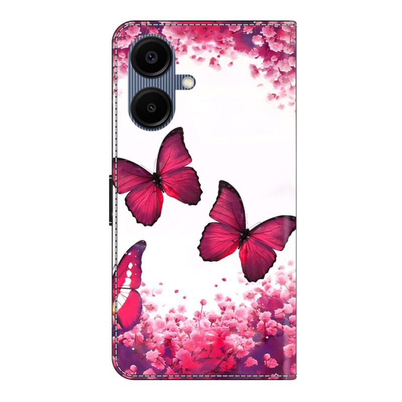 Suojaa Samsung Galaxy A07 5G / 4G -puhelimesi tyylikkäästi tällä lompakkokotelolla, jossa on läppä ja punainen perhonen. Siinä on käytännöllinen ulos taittuva pidike, 2 korttipaikkaa ja turvallinen magneettisuljenta.