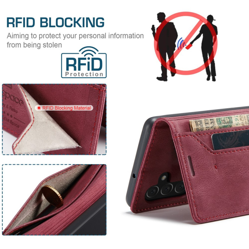 Tämä AUTSPACE:n RFID-kääntösuojus sopii täydellisesti kaikkien Samsung Galaxy A14 5G -puhelimesi ja luottokorttitija