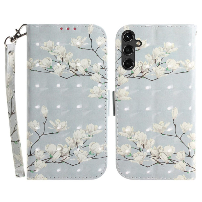 Samsung Galaxy A14 5G / A14 -puhelimesi on täydellisesti suojattu tällä keinonahkakannella, jossa on kukkien oksat ja kiinnitja