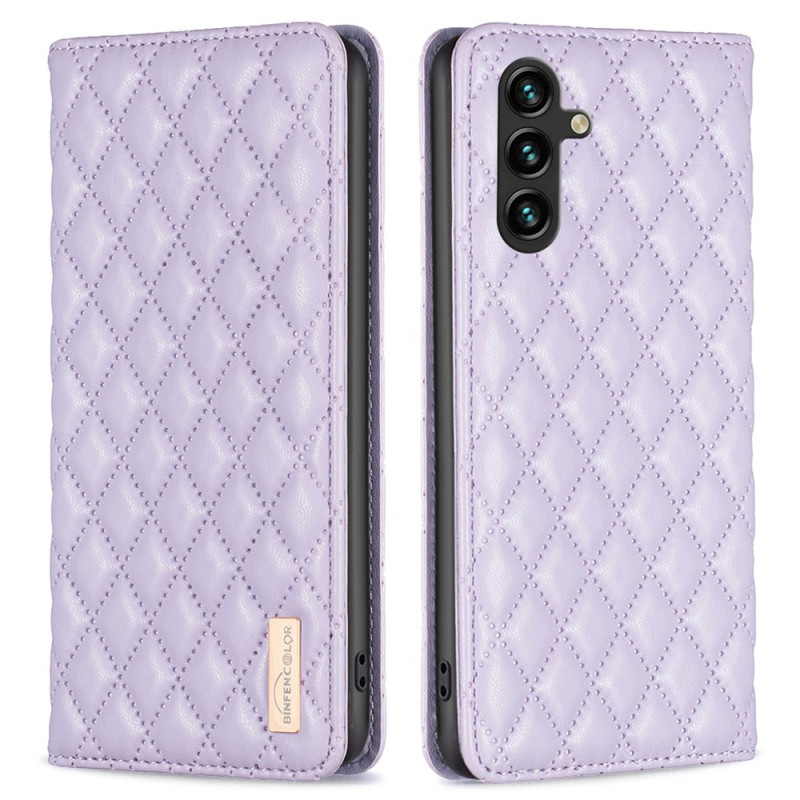 Tutustu BinfenColorin tikattuun flip-suojukseen Samsung Galaxy A15 -puhelimelle, jossa on korttipidike.