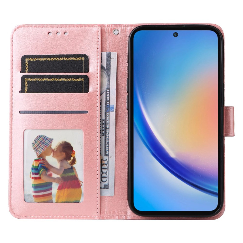 Siinä on 2 korttipaikkaa, valokuvapaikka ja rahatasku. Lisäksi siinä on säädja