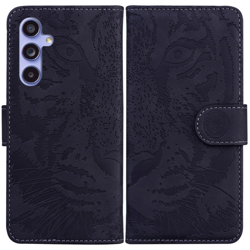 Tutustu Samsung Galaxy A35 5G -puhelimen kuoreen, jossa on tiikerikuvio.
