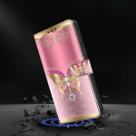 Étui portefeuille élégant pour Samsung Galaxy A37 5G avec un magnifique motif papillon 3D rose et or. Doté de fentes pour cartes, d'un support intégré et d'une fermeture magnétique sécurisée pour une protection complète et un style raffiné au quotidien.