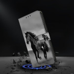 Étui portefeuille élégant avec motif cheval noir en relief 3D pour Samsung Galaxy A37 5G. Fermeture magnétique sécurisée, support intégré et emplacements pour cartes. Protection complète avec rebords surélevés pour l'objectif photo.