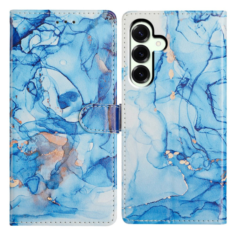 Étui élégant à rabat avec motif marbre bleu pour votre Samsung Galaxy A37 5G. Design tout-en-un avec porte-cartes, compartiment portefeuille et support intégré. Fermeture magnétique sécurisée et dragonne détachable incluse pour un transport facile...