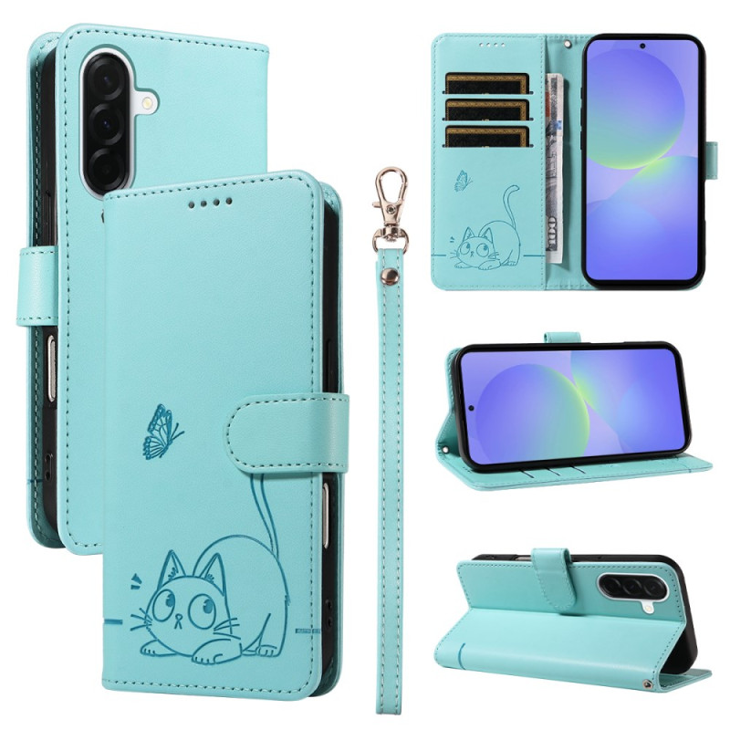 Étui portefeuille élégant en cuir pour Samsung Galaxy A37 5G avec motif chat porte-bonheur. Doté de 3 emplacements pour cartes, une poche pour billets, fermeture magnétique sécurisée et dragonne pratique. Protection intégrale avec coque TPU antichoc.