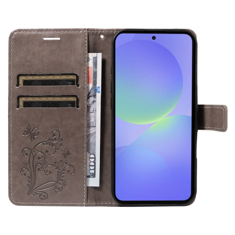 Protégez votre Samsung Galaxy A37 5G avec élégance grâce à cet étui portefeuille en cuir PU premium. Orné d'un magnifique motif papillon floral, il combine style raffiné et protection robuste avec sa coque intérieure en TPU mat durable.