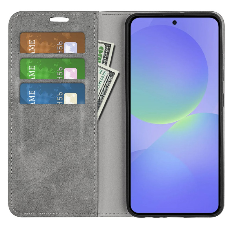 Étui portefeuille élégant avec texture cuir toucher doux pour Samsung Galaxy A37 5G. Design pratique avec porte-cartes intégrés, support mains-libres et fermeture magnétique sécurisée. Protection complète contre les chocs et rayures.