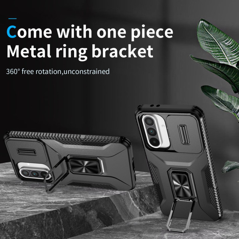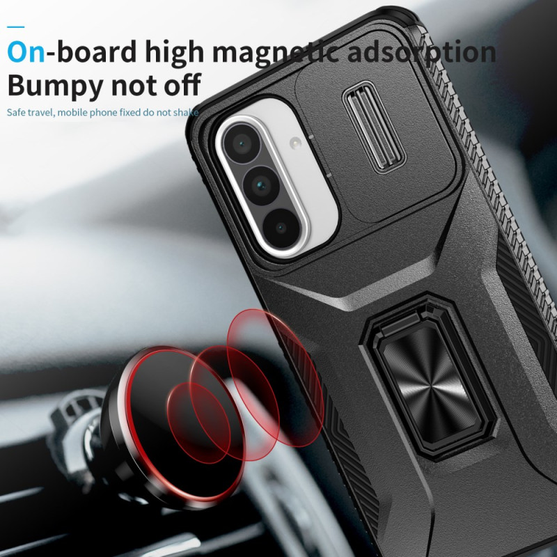 Découvrez notre coque de protection avancée pour Samsung Galaxy A56 5G. Dotée d'une double couche TPU+PC, d'un couvercle coulissant pour la caméra et d'une béquille pratique, elle offre une protection optimale contre les chocs et les chutes.