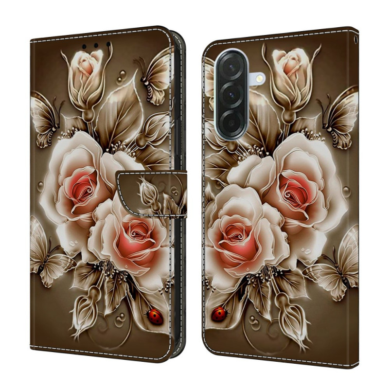 Protégez votre Samsung Galaxy A57 5G avec style grâce à cet étui portefeuille élégant. Doté d'un support pliable, de 2 emplacements pour cartes et d'une fermeture magnétique sécurisée, il allie fonctionnalité et design raffiné avec son motif rose marron unique.