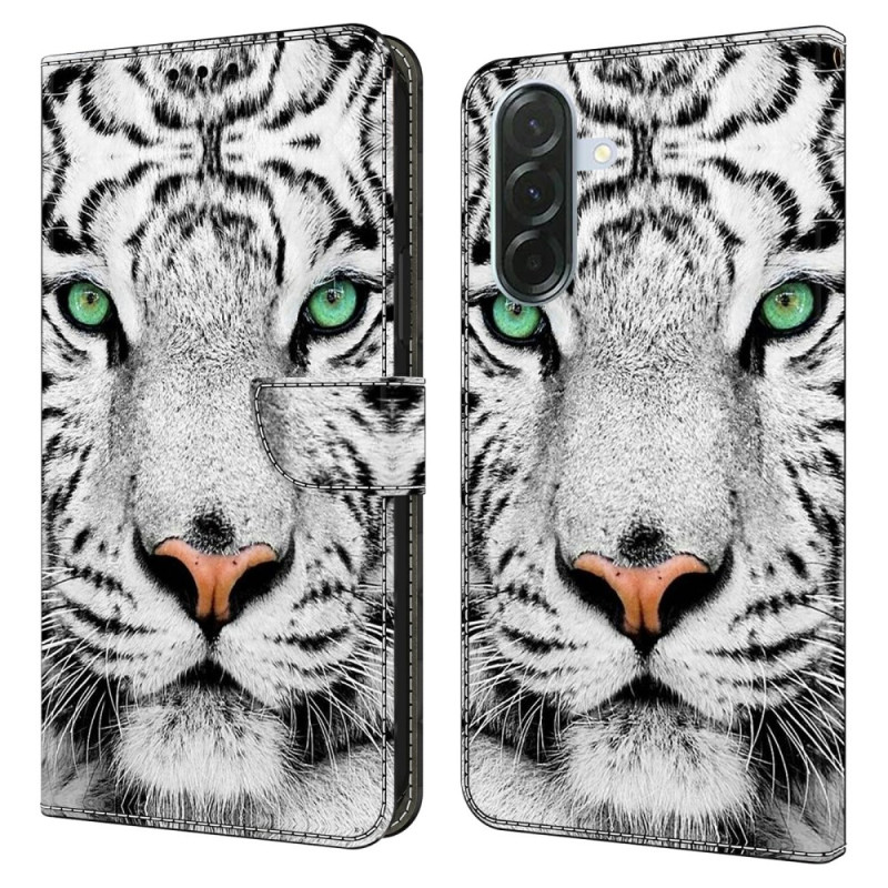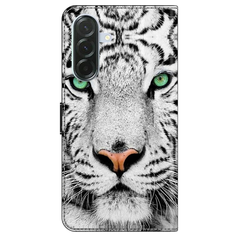 Protégez votre Samsung Galaxy A57 5G avec style grâce à cet étui à rabat au motif tigre distinctif. Doté de porte-cartes intégrés et d'un compartiment pour billets, il allie fonctionnalité et élégance. Support pliable pour un confort optimal.