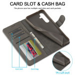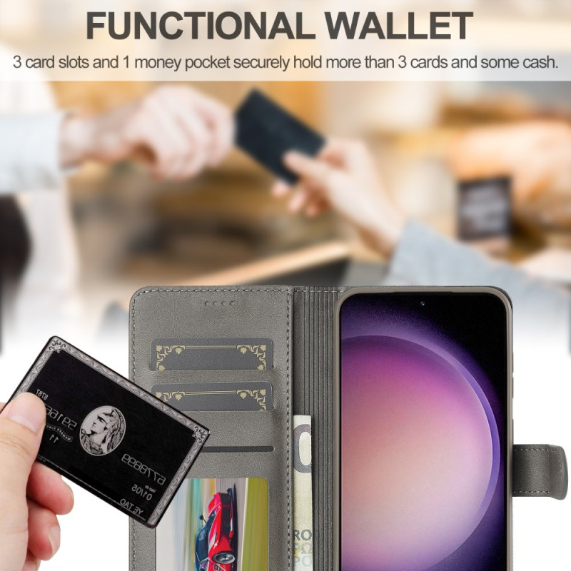 Tyylikäs lompakkokotelo Samsung Galaxy A57 5G:lle, jossa on vasikannahkainen rakenne. Sisältää 2 korttipaikkaa, 1 valokuvalokeron ja 1 käteistaskun. Kokoontaitettava katseluteline ja turvallinen magneettisuljenta täydellistä suojaa varten.
