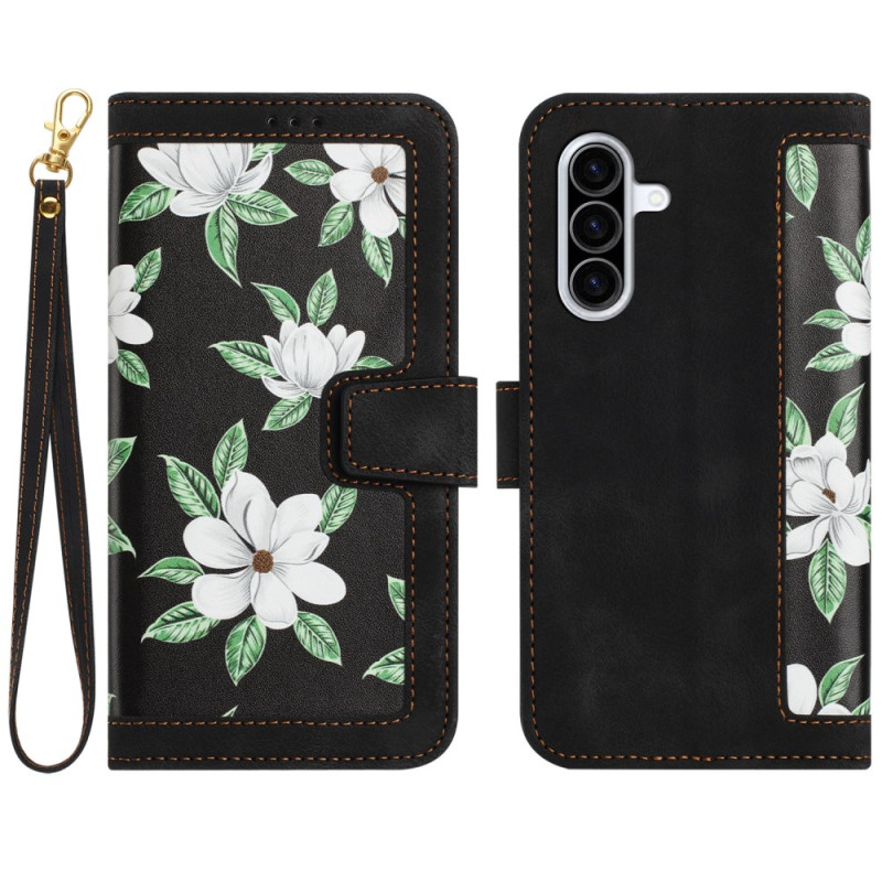 Suojaa Samsung Galaxy A57 5G -puhelimesi tyylikkäästi tällä PU-nahasta valmistetulla lompakkokotelolla. Hienostunut kukkamalli, integroitu korttipidike ja jalusta-toiminto käytännölliseen arkeen. Täydellinen suoja kolhuilta ja naarmuilta.