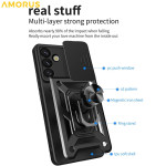 Suojaa Samsung Galaxy A57 5G -puhelimesi tällä tukevalla suojakuorella , jossa on pyörivä potkulaite ja liukuva linssisuoja. Sotilasluokan iskunkestävyys, naarmuuntumaton pinta ja integroitu magneettilevy autokiinnitystä varten.