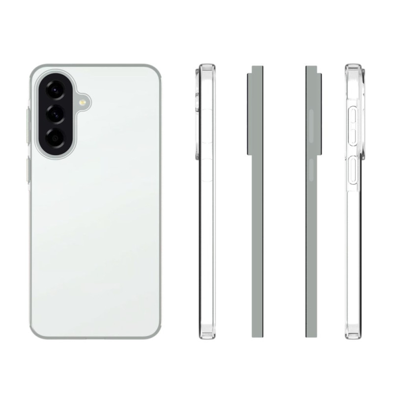 Suojaa Samsung Galaxy A57 5G -puhelimesi tyylikkäästi tällä erittäin kestävällä läpinäkyvällä kotelolla. Sen kiiltävä pinta hylkii vesijälkiä ja tahroja, ja korotetut reunukset suojaavat näyttöä ja kameroita naarmuilta.