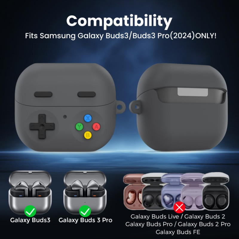 Tutustu ainutlaatuiseen silikonikoteloon Samsung Galaxy Buds3 Pro -puhelimelle, joka on saanut inspiraationsa retropelikonsoleista. Se tarjoaa täydellisen suojan ja on yhteensopiva sekä langattoman että langallisen latauksen kanssa. Sen kaksiosainen muotoilu takaa optimaalisen iskunvaimennuksen ja naarmunkestävyyden.