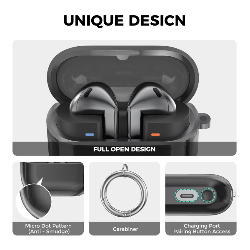 Tutustu läpinäkyvään suojakoteloon Samsung Galaxy Buds3:lle, joka tarjoaa erinomaisen suojan putoamisia ja naarmuja vastaan. Kestävästä TPU-muovista valmistettu suojakotelo säilyttää kuulokkeiden alkuperäisen muotoilun ja varmistaa samalla niiden turvallisuuden.