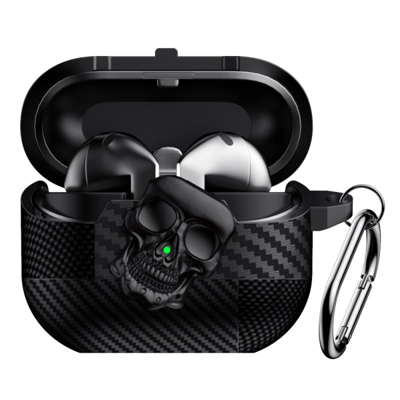 Tutustu tyylikkääseen ja kestävään suojakoteloon Samsung Galaxy Buds3 Pro / Buds3 -kuulokkeillesi. Laadukkaasta TPU:sta ja metallista valmistettu suojakuori tarjoaa täydellisen suojan naarmuja, kolhuja ja likaa vastaan. Sen tyylikäs punk-muotoilu metallisella pääkallolla tuo ripauksen luonnetta, ja mukana tuleva karabiini takaa kätevän kannettavuuden.
