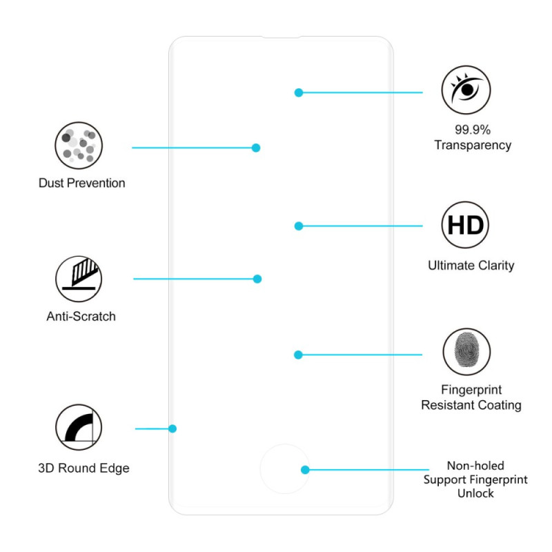 Tutustu ensiluokkaiseen näytönsuojaamme Samsung Galaxy S10 Plus -puhelimelle. Tarkan CNC-leikkaustekniikan ja 3D-reunan ansiosta tämä 0,26 mm paksu karkaistusta lasista valmistettu kalvo tarjoaa luonnollisen tuntuman ja samalla optimaalisen suojan. Yhteensopiva sormenjäljen lukituksen avaamisen kanssa.