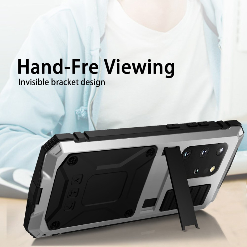 Tukeva monimateriaalikotelo Samsung Galaxy S20 Plus -puhelimelle, joka tarjoaa täydellisen suojan pölyä, roiskeita ja putoamisia vastaan.