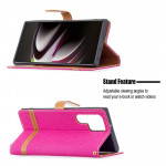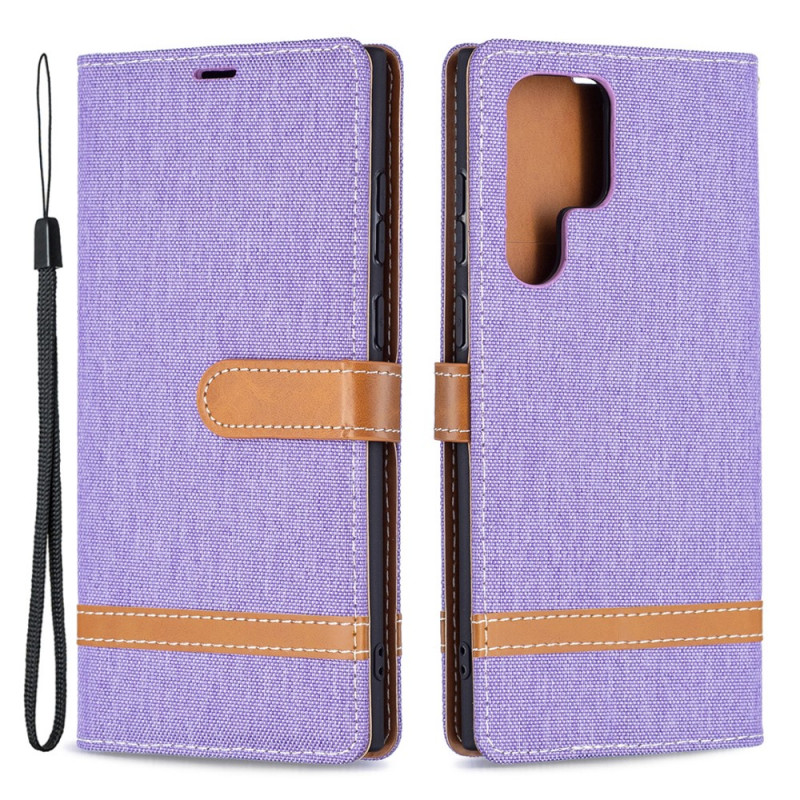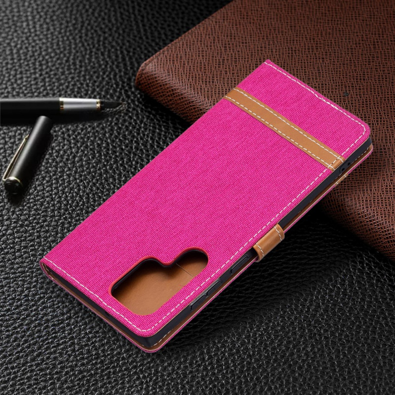tu osittain kankaasta ja osittain keinonahasta Samsung Galaxy S22 Ultra 5G -puhelimelle.