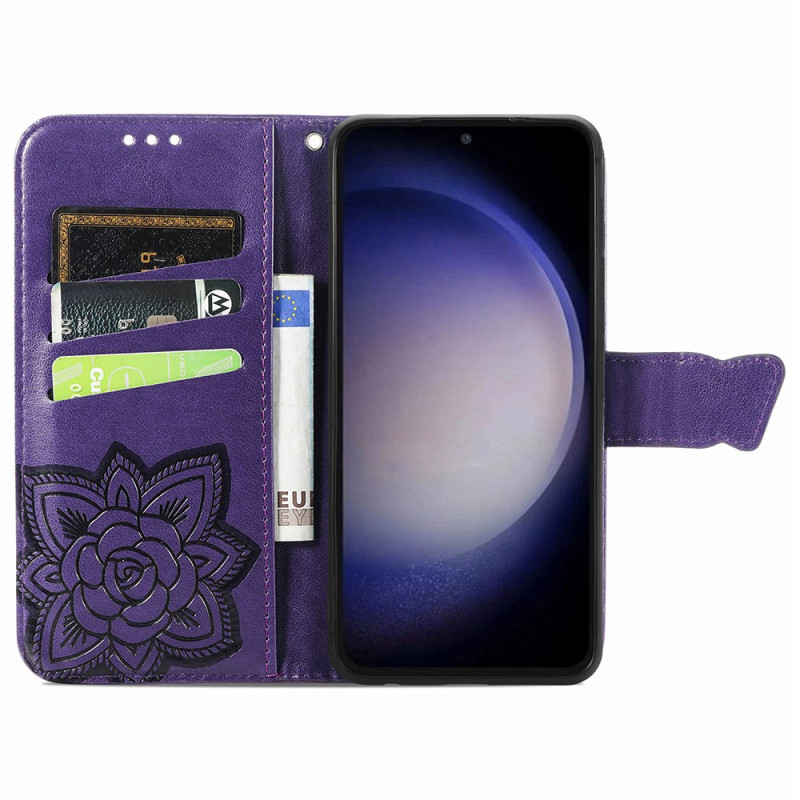 Anna Samsung Galaxy S23 FE -puhelimellesi ripaus barokkimaista eleganssia tällä upealla suojuksella, jossa on perhoskuvio.