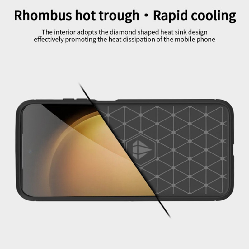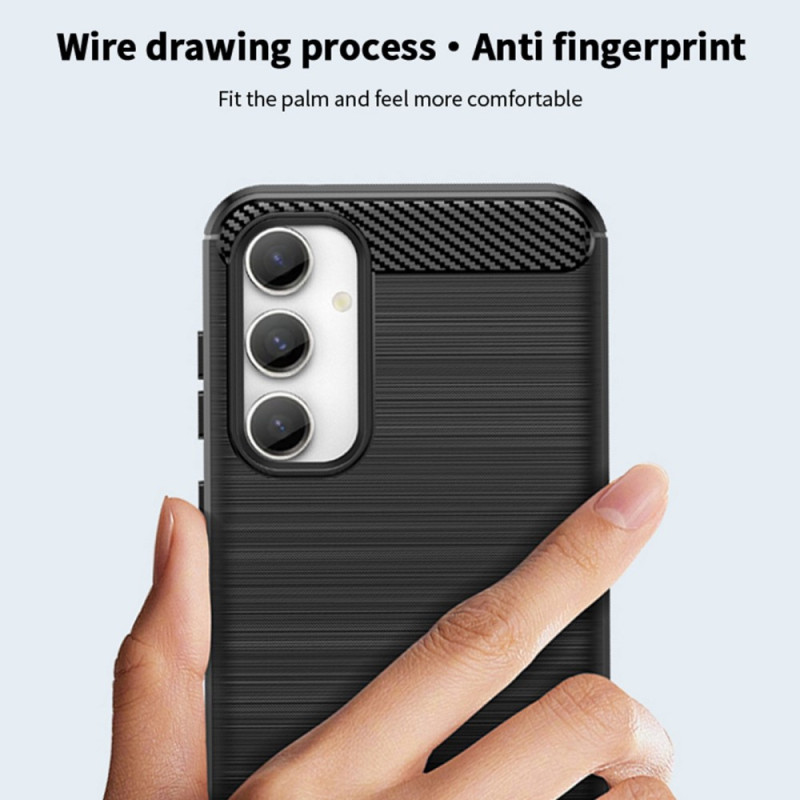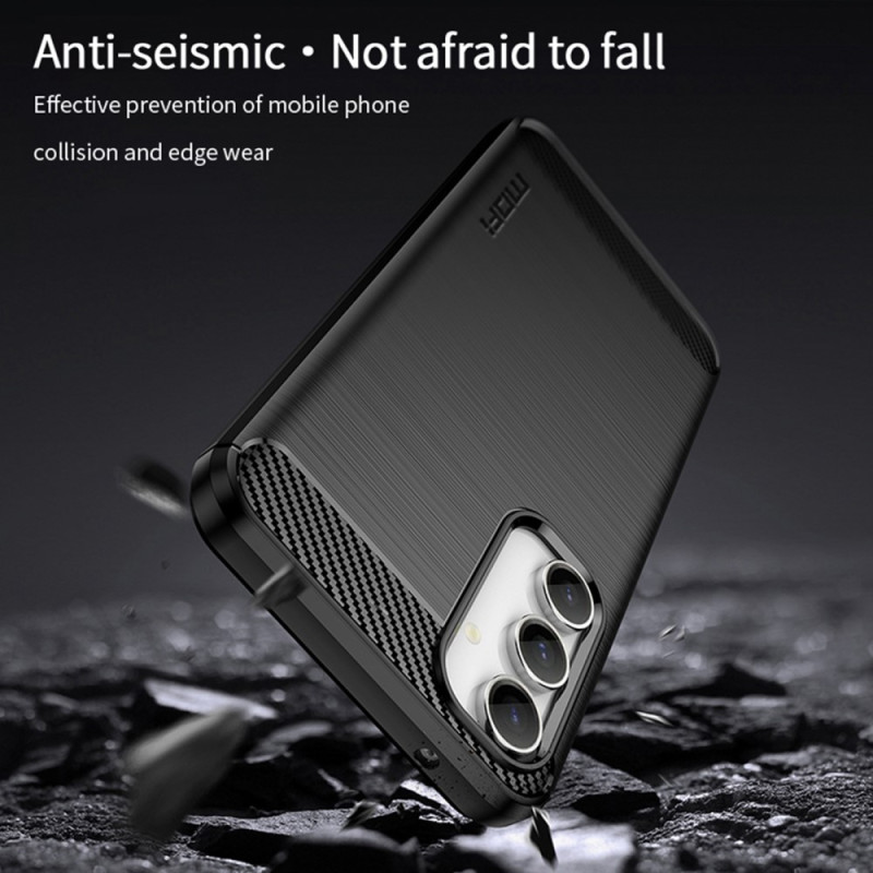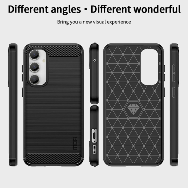 MOFI:n harjattu hiilikuitukuori sopii Samsung Galaxy S23 FE -puhelimeen, jossa yhdistyvät tehokkuus ja tyylikkyys.