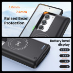 Tämä 10000mAh akkukotelo tarjoaa pidennetyn akun käyttöiän Samsung Galaxy S23 Plus ja S22 Plus -puhelimille ja suojaa samalla puhelinta täydellisesti. Langaton magneettilataus tekee käytöstä entistäkin kätevämpää, erityisesti liikkeellä ollessa. Kotelossa on älykäs virtapainike ja neliportainen LED-merkkivalo akun tilan nopeaa tarkistamista varten. Sen silikonista, PC:stä ja ABS:stä valmistettu rakenne sisältää useita suojausjärjestelmiä ylilatauksen, oikosulkujen tai käyttövirheiden estämiseksi.