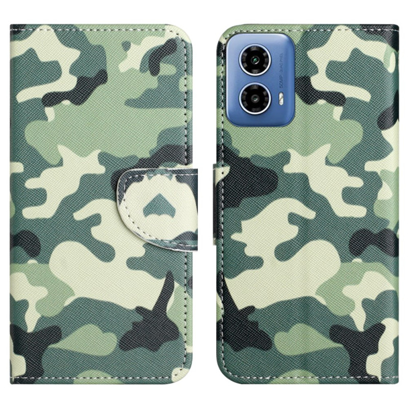Tutustu tyylikkääseen ja toimivaan lompakkokoteloon Motorola Moto G24 Power -puhelimelle. Laadukkaasta PU-nahasta valmistettu suojakotelo tarjoaa täydellisen suojan kuvioidulla muotoilullaan ja ainutlaatuisella naamiointikuviollaan.
