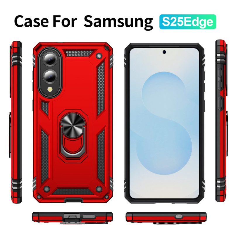 Tutustu Samsung Galaxy S25 Edgen kestävään koteloon. Siinä on 360° kääntyvä tuki, ja se tarjoaa sotilasluokan suojan iskuja ja putoamisia vastaan.