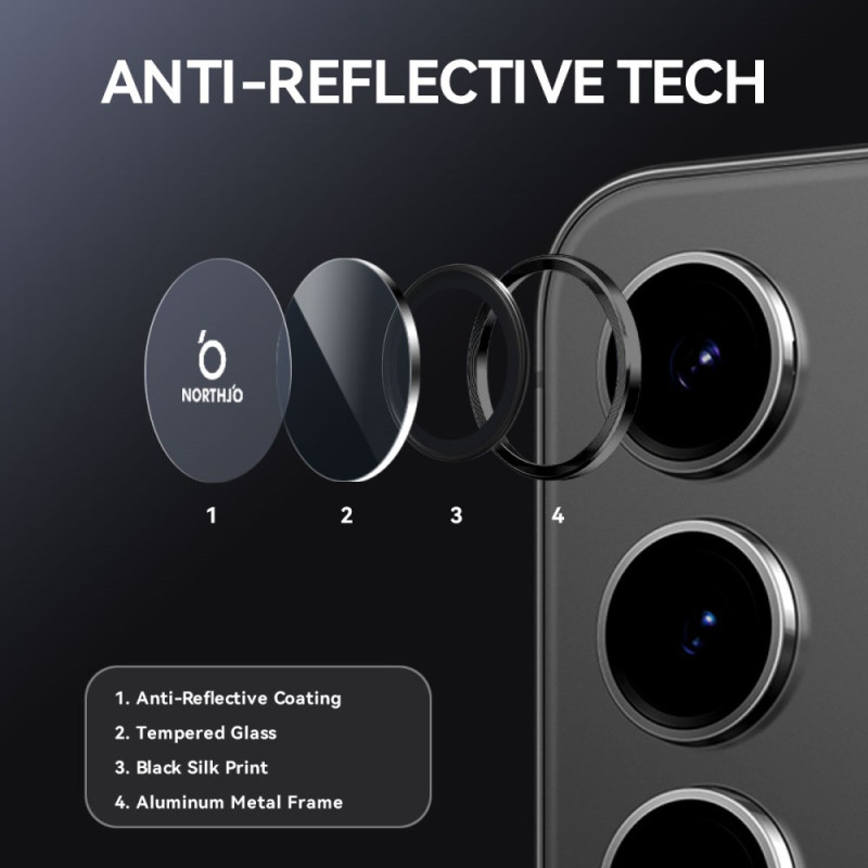Tutustu NORTHJO-linssisuojaan Samsung Galaxy S25 FE -puhelimelle. Tyylikkään CD-viivoitetun alumiinirakenteen ja 9H-karkaistun lasin ansiosta se tarjoaa tehokkaan suojan naarmuja ja kolhuja vastaan.