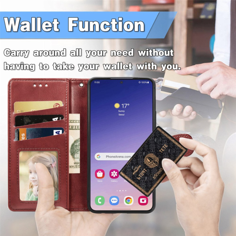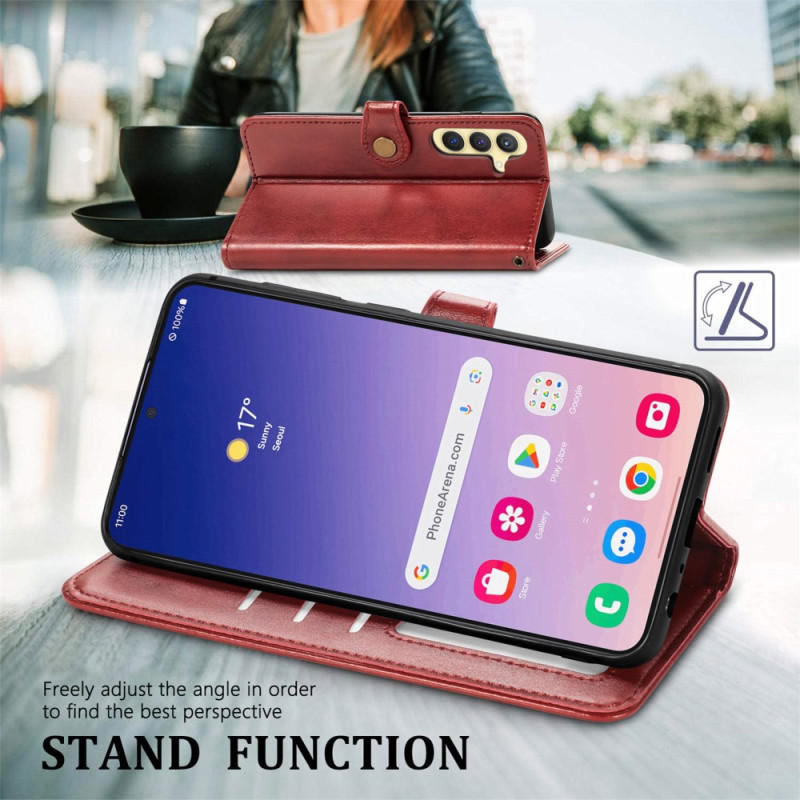 Tutustu nahkaiseen lompakkokoteloon Samsung Galaxy S25 Plus 5G:lle. Täynnä käytännöllisiä ominaisuuksia, kuten korttipaikkoja, säädettävä jalusta ja turvallinen magneettisuljenta, se tarjoaa täydellisen suojan ja optimaalisen mukavuuden älypuhelimellesi.