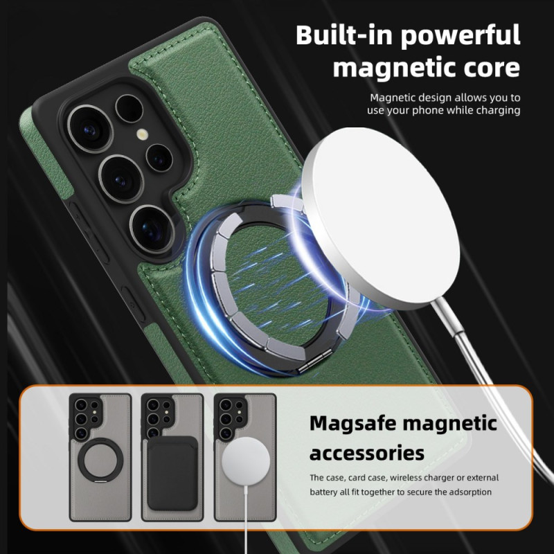Tutustu innovatiiviseen magneettikoteloon Samsung Galaxy S25 Ultra -puhelimelle. Siinä on 360° pyörivä rengas, ja se tarjoaa vankan suojan TPU:n, PC:n ja PU-nahan yhdistelmän ansiosta.
