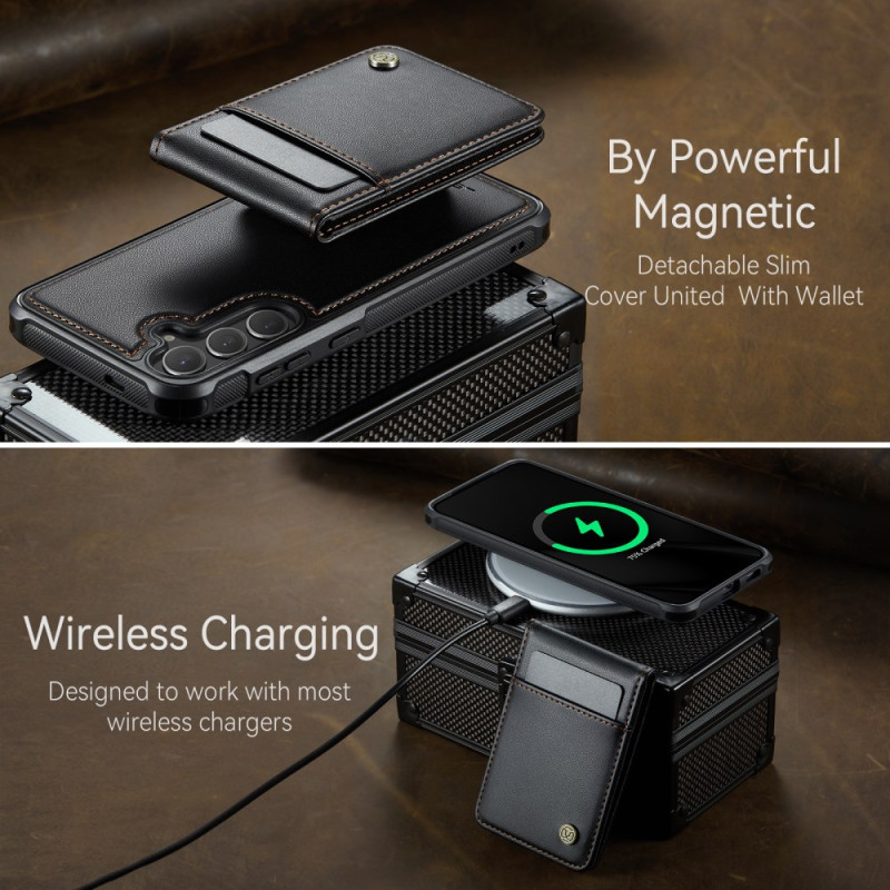 Découvrez l'étui JEEHOOD : design détachable 2-en-1 avec porte-cartes magnétique et protection RFID. Conception premium alliant flexibilité et élégance, compatible avec les accessoires magnétiques. Transformez votre téléphone en support mains-libres.