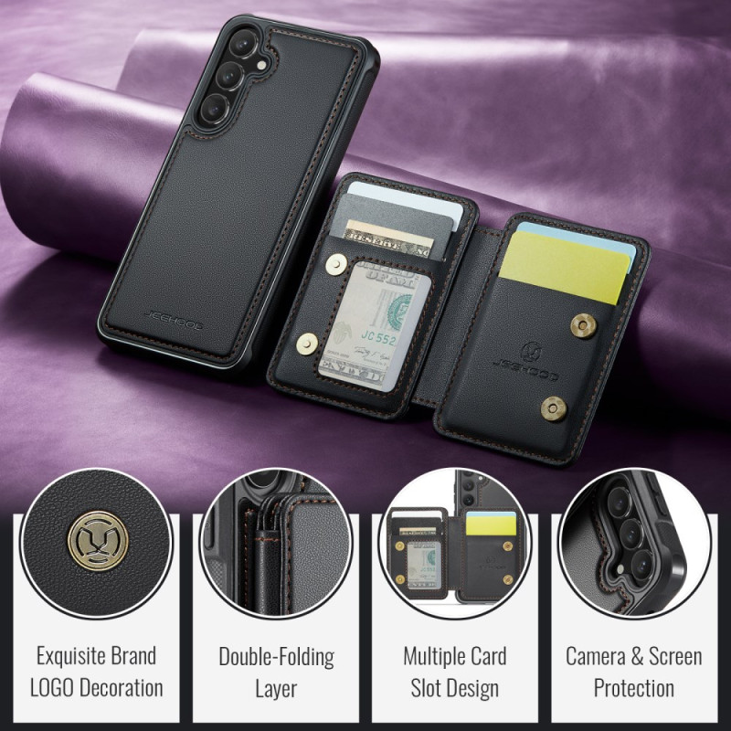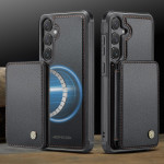 Étui en cuir 2-en-1 avec porte-cartes magnétique détachable pour Samsung Galaxy S26. Protection RFID intégrée, fonction support et compatibilité avec accessoires magnétiques. Design polyvalent offrant sécurité et praticité au quotidien.