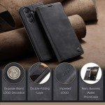 Étui portefeuille élégant pour Samsung Galaxy S26 combinant style rétro et protection optimale. Doté de compartiments pour cartes et espèces, d'un support de visionnage ajustable et d'une fermeture magnétique sécurisée pour une utilisation quotidienne pratique.