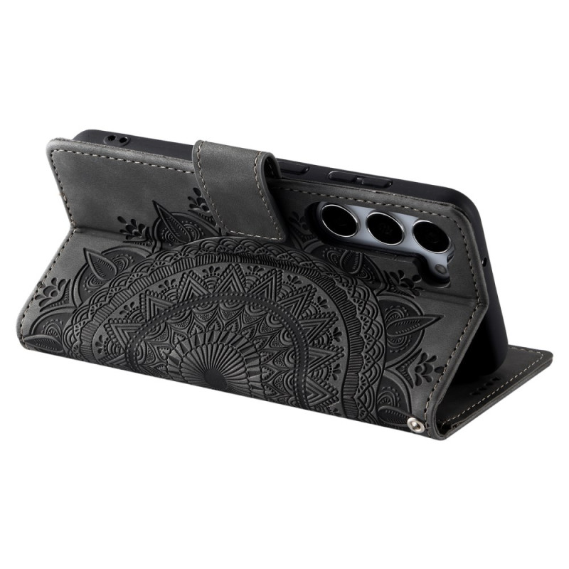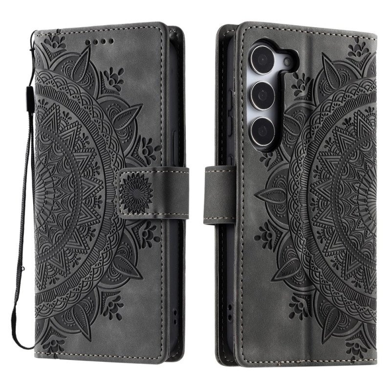 Étui portefeuille élégant pour Samsung Galaxy S26 Plus 5G+ avec motif mandala gravé. Comprend 3 emplacements pour cartes, compartiment à billets, support intégré et dragonne pratique. Protection complète contre les rayures et l'usure quotidienne.