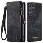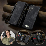 Étui portefeuille détachable en cuir PU pour Samsung Galaxy S26 Plus. Design 2-en-1 avec coque TPU intégrée, 8 emplacements pour cartes, poche zippée et dragonne amovible. Fermeture magnétique sécurisée et fonction support mains libres.