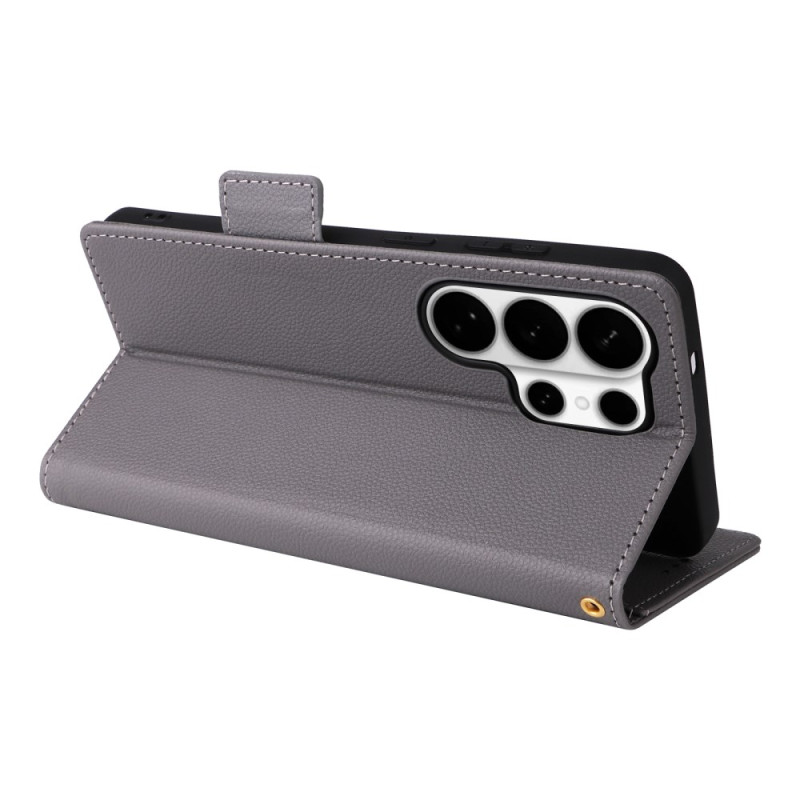 Tutustu tyylikkääseen lompakkokoteloon Samsung Galaxy S26 Ultra -puhelimelle. Hienostunut lychee-kuosi, handsfree-toiminto ja useita lokeroita korteille ja rahoille. Täydellinen suoja turvallisen magneettisuljennan ja mukana tulevan käytännöllisen käsihihnan avulla.