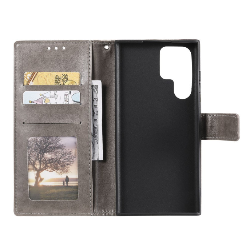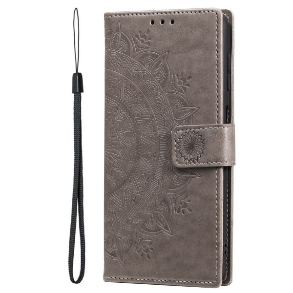 Tyylikäs lompakkokotelo Samsung Galaxy S26 Ultra -puhelimelle, jossa on painettu mandala-motiivi. Sisältää säädettävän pidikkeen, korttipaikat ja käytännöllisen käsihihnan. Täysi suoja ja hienostunut muotoilu älypuhelimellesi.
