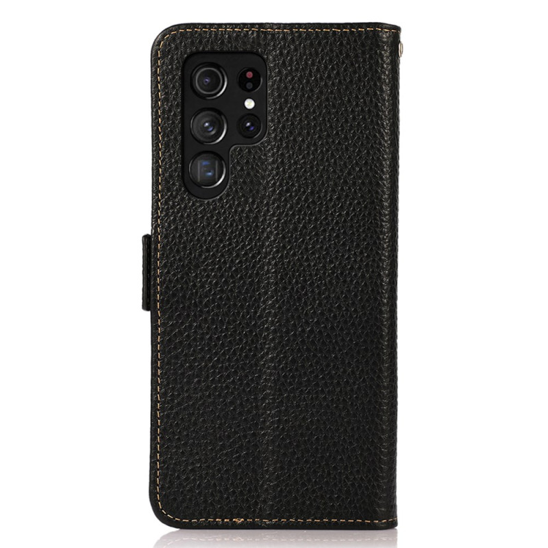 Hienostunut aitoa nahkaa suojakuori lychee rakenne Samsung Galaxy S26 Ultra. Nauti kehittyneestä RFID-suojasta, kätevistä korttipaikoista ja muunneltavasta jalustasta, jolla voit katsella sisältöäsi täysin vapaasti.