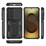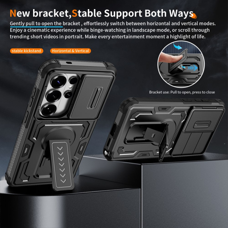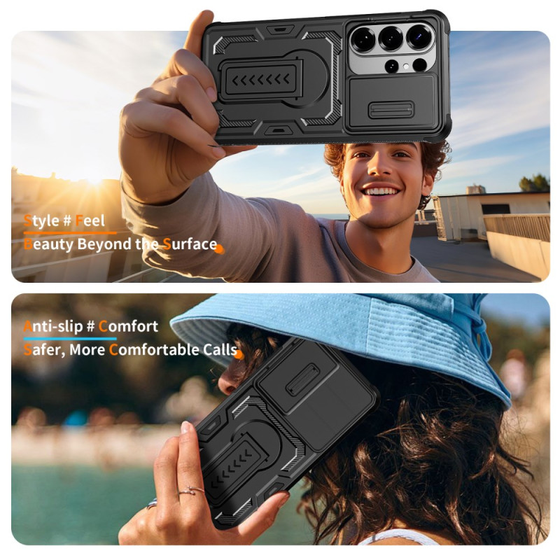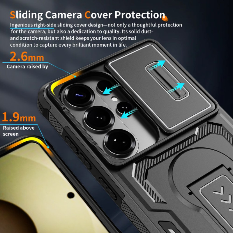 Protégez votre Samsung Galaxy S26 Ultra avec cette coque innovante dotée d'une protection caméra coulissante, d'une béquille multi-angles et d'une résistance militaire. Design texturé antidérapant pour une prise en main optimale.