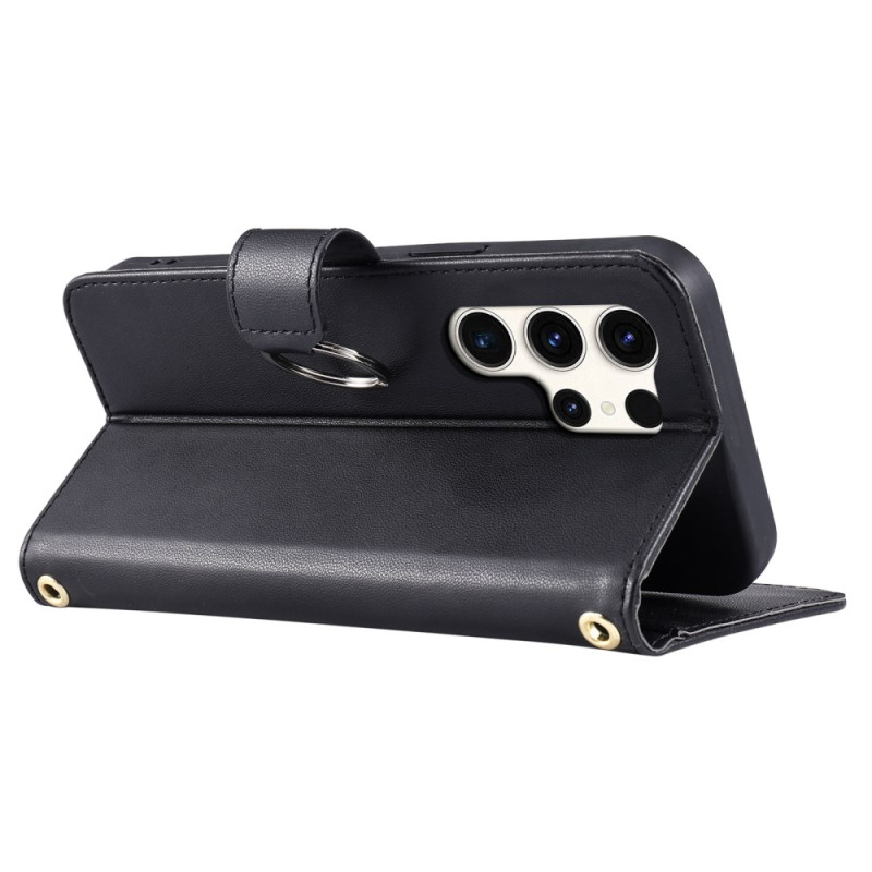 Protégez votre Samsung Galaxy S26 Ultra avec style grâce à cet étui portefeuille multifonction. Conçu en cuir PU premium et TPU, il offre une protection complète contre les chocs et rayures. Son design sophistiqué intègre un support pliable, une boucle anneau pratique, et de multiples rangements pour cartes et accessoires.