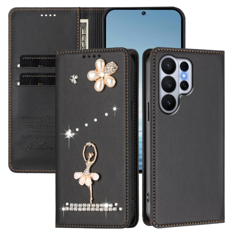 Protégez votre Samsung Galaxy S26 Ultra avec élégance grâce à cet étui portefeuille en cuir PU premium. Doté d'une protection RFID, de strass décoratifs représentant une danseuse ballet en 3D, de 2 emplacements pour cartes et d'une fonction support...