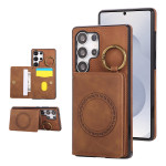 Protégez votre Samsung Galaxy S26 Ultra avec style grâce à cet étui multifonctionnel en cuir et TPU. Doté d'un porte-cartes magnétique, d'un support pliable pour visionnage mains libres et d'un anneau rotatif pour une prise sécurisée.